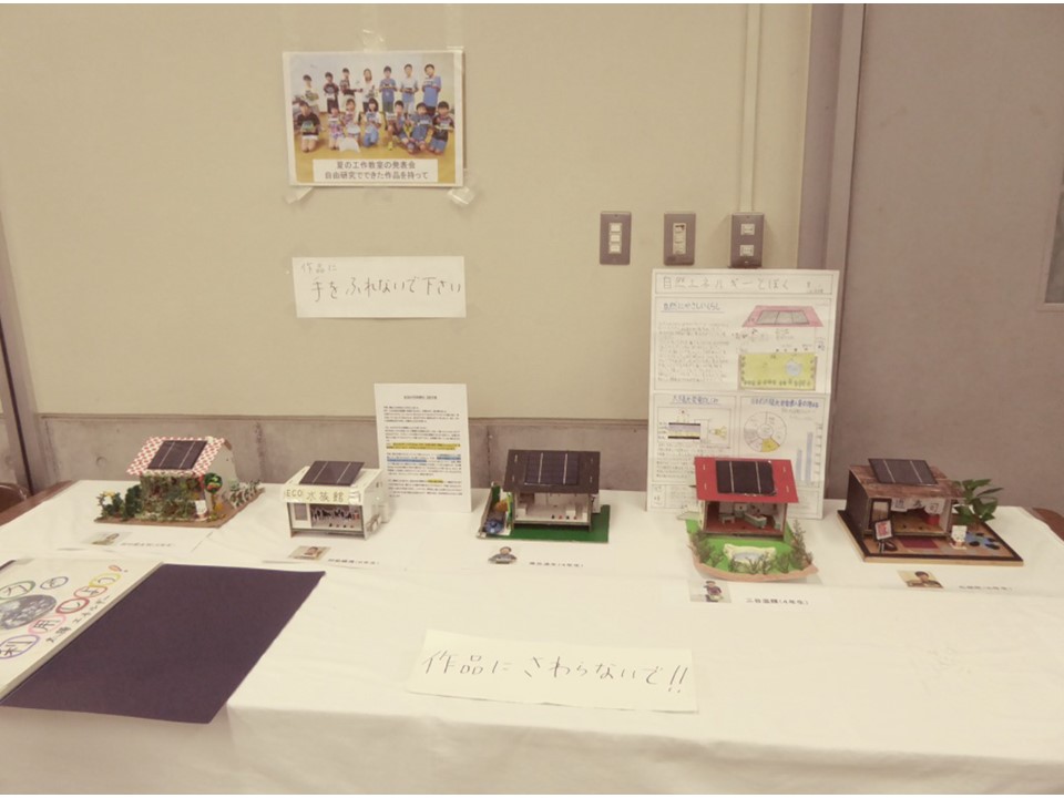 @「作品の展示」コーナーでは、夏の工作教室で作り、自由研究で磨きをかけた素敵ないくつかの作品を展示しました. 作品、 風景