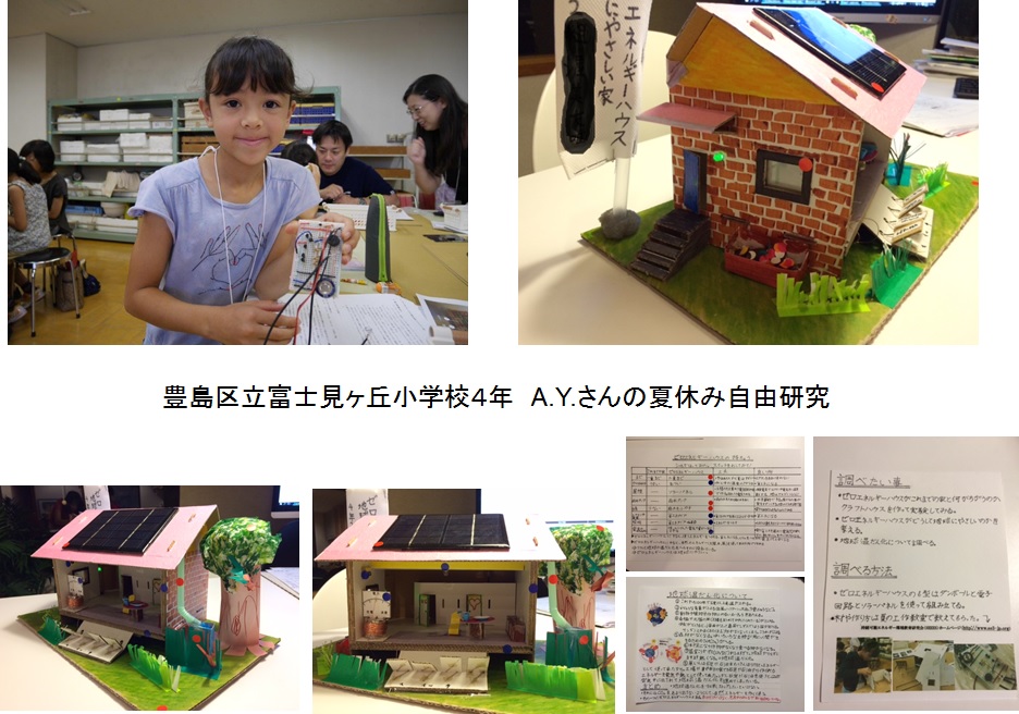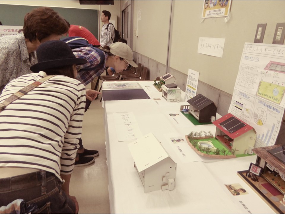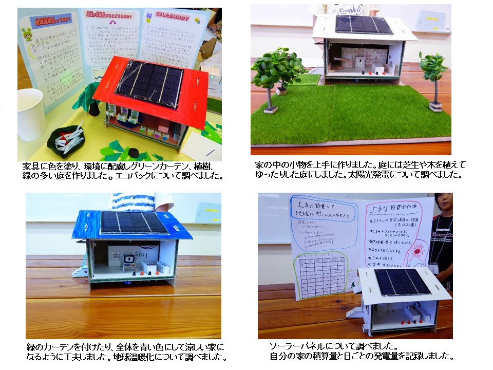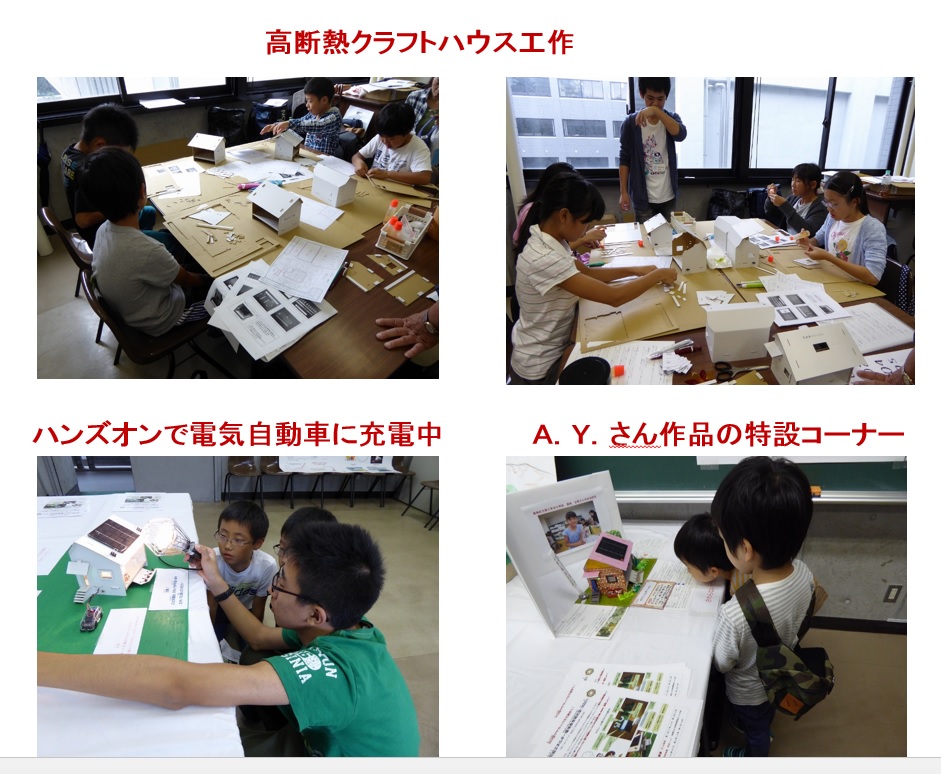 ポスターで地球温暖化とゼロエネルギーハウスとの関係を示し、「高断熱クラフトハウス」の工作教室を開きました.