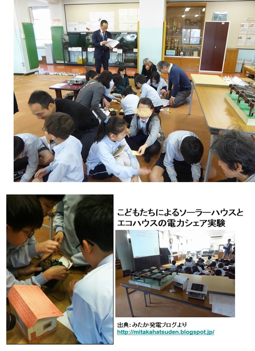 日時:2018年3月14日(水)、三鷹市の聖徳学園小学校の4年生を対象 、NPO法人みたか市民共同発電主催の「理科特別授業」に企画運営協力の形で、子どもたちにソーラーハウスとエコハウスの連携実験を行ってもらいました.写真